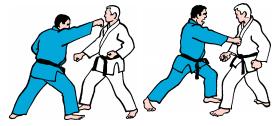 Jodan or chudan Tsuki - punch from the fronts-side with the hand to the head or to the body. Cel: Solar plexus, stomac or face. |